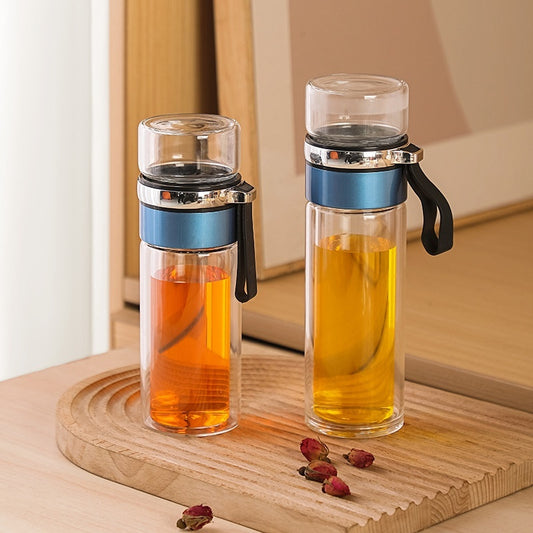 Double-layer Insulated Tea Water Separation Glass Cup