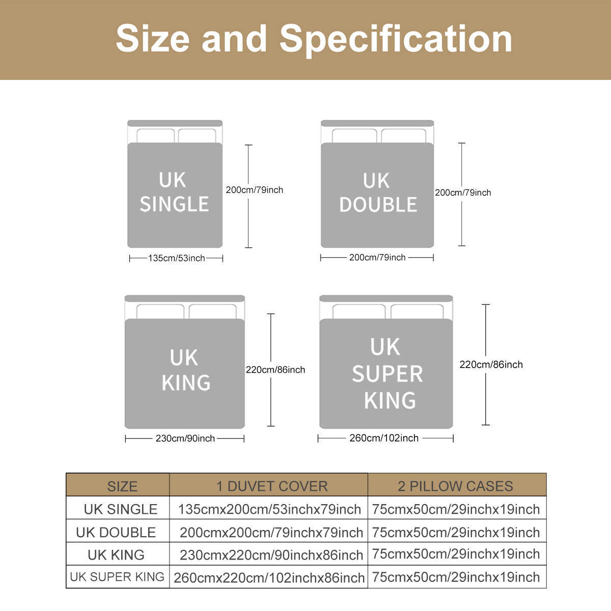 Single:duvet cover (53x79 inches) and pillowcase (29x19 inches)