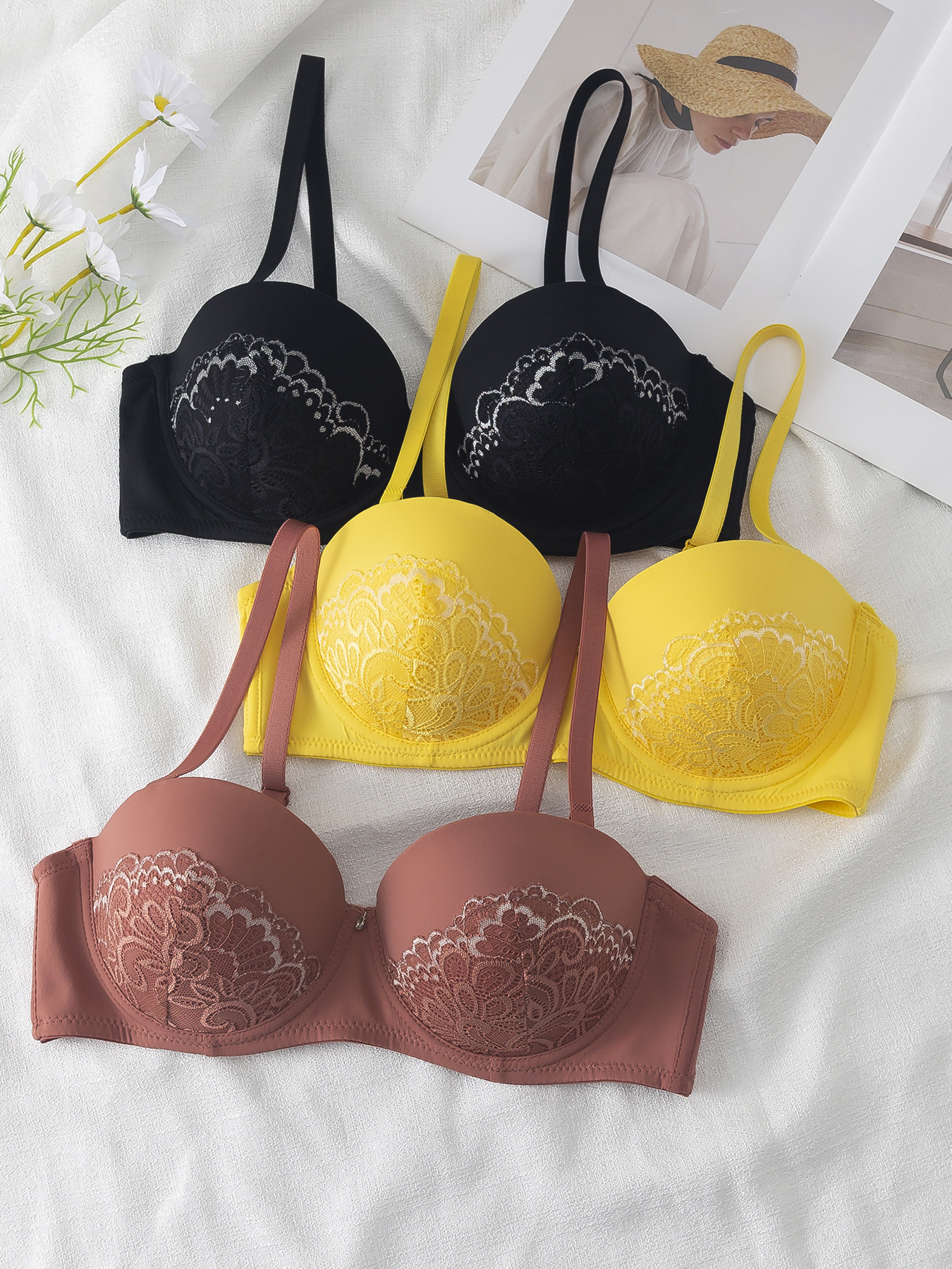 New Style Wireless Bra With Lace Design, Back 2-Row Hook Closure, Beautiful Back Design, French Style Women's Bra