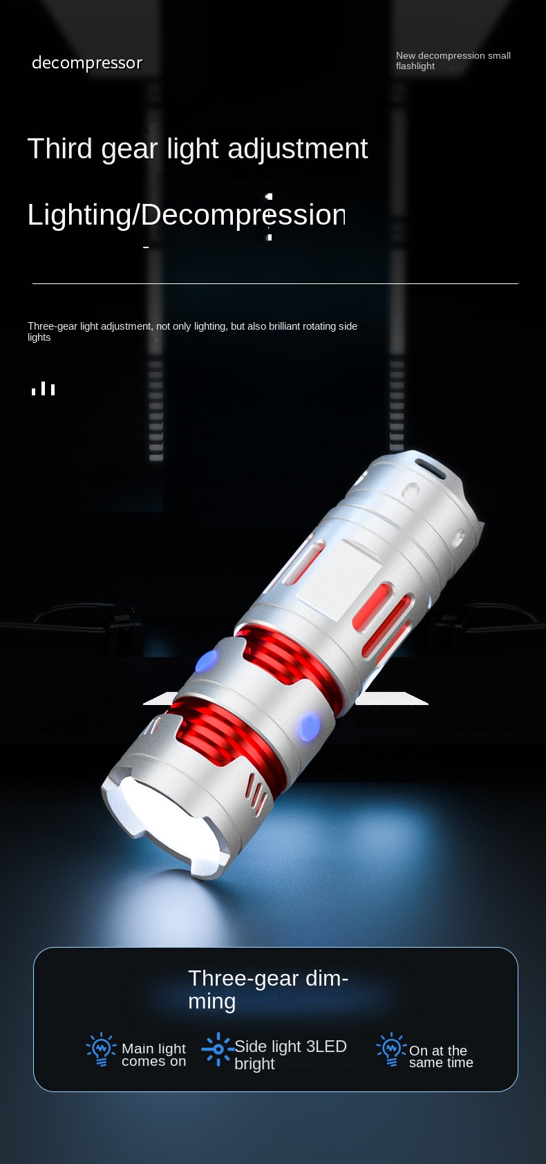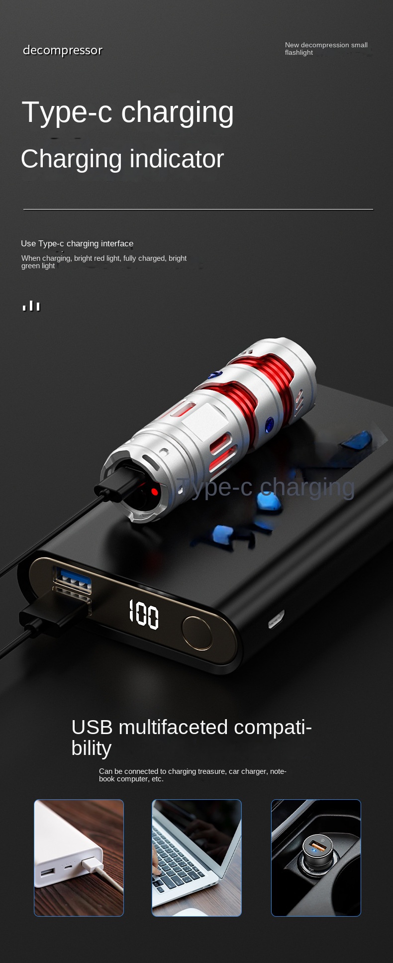 Portable Mini Flashlight Spiral Top Type-C Multifunctional Led Aluminum Alloy Strong Lighting Flashlight